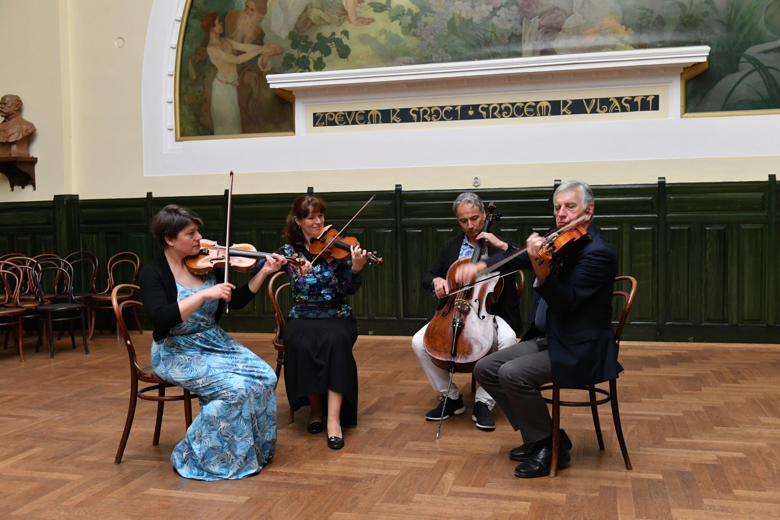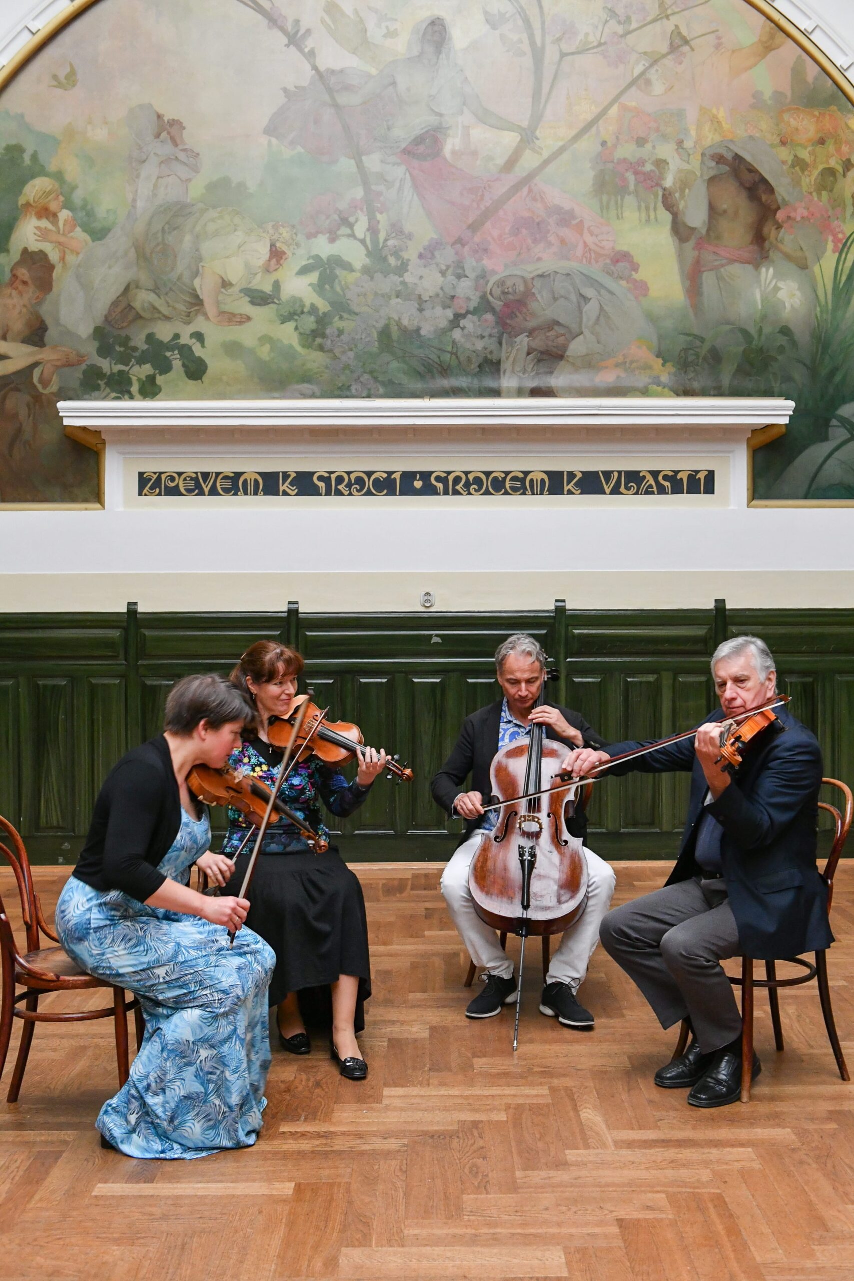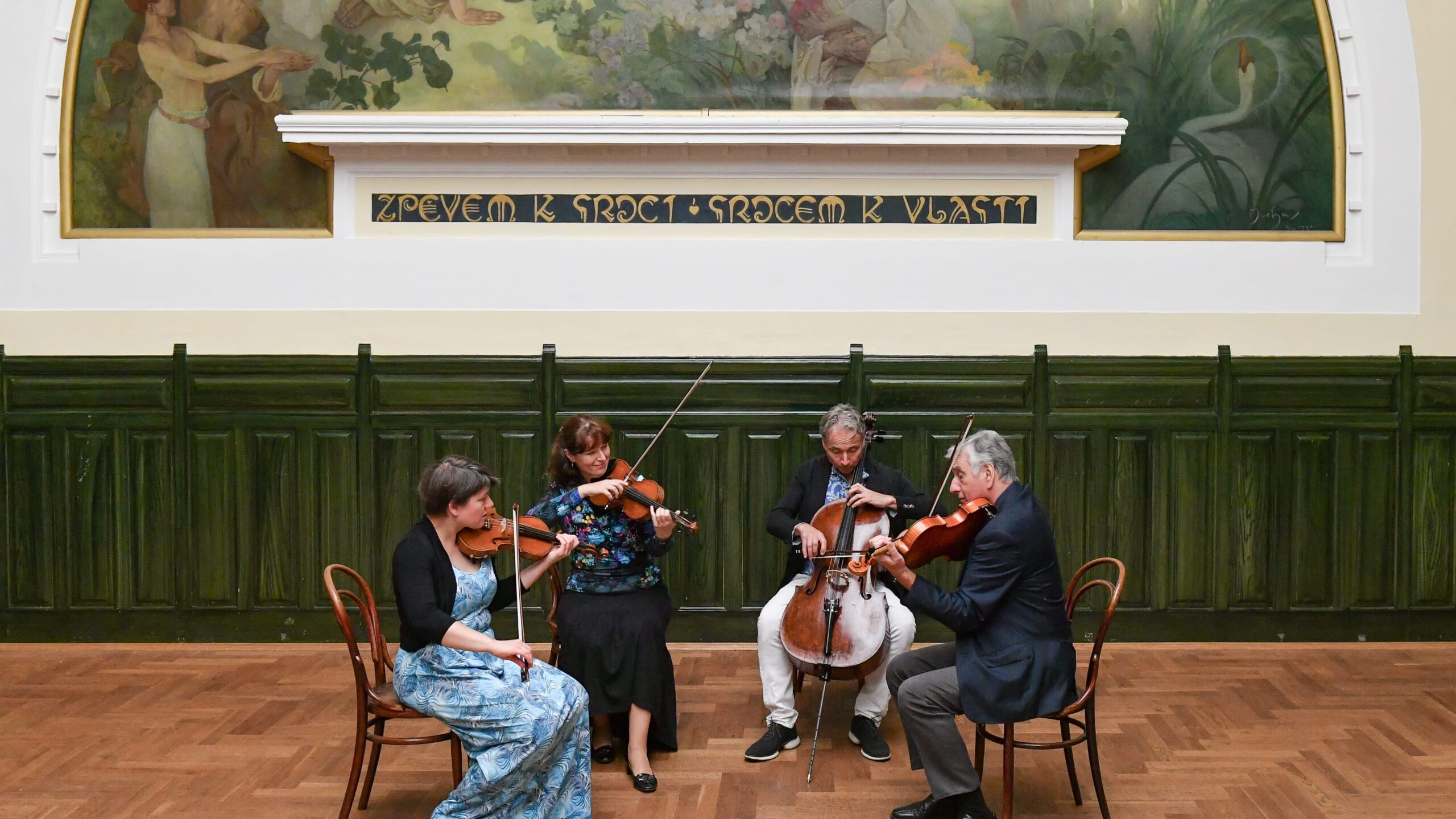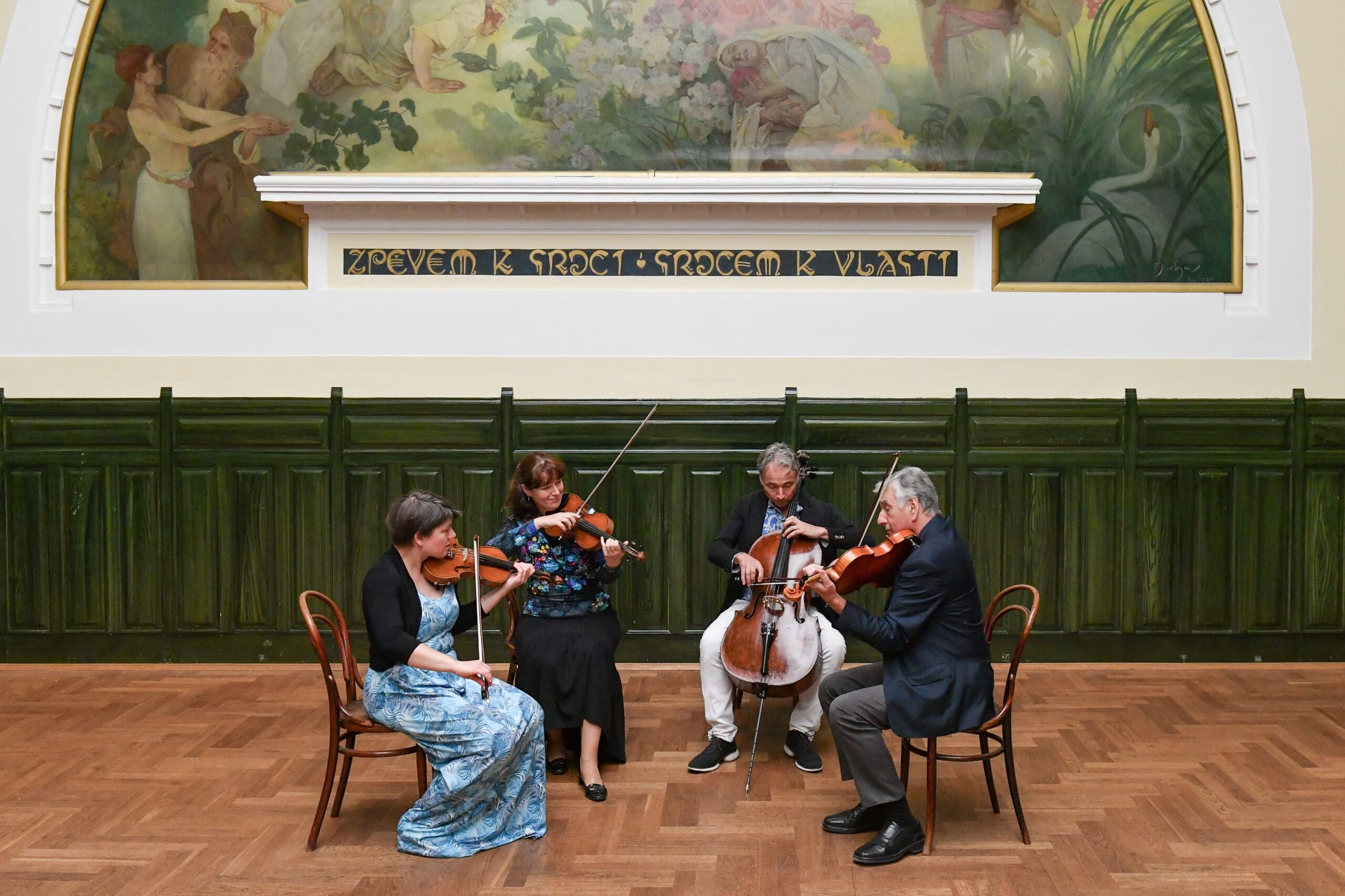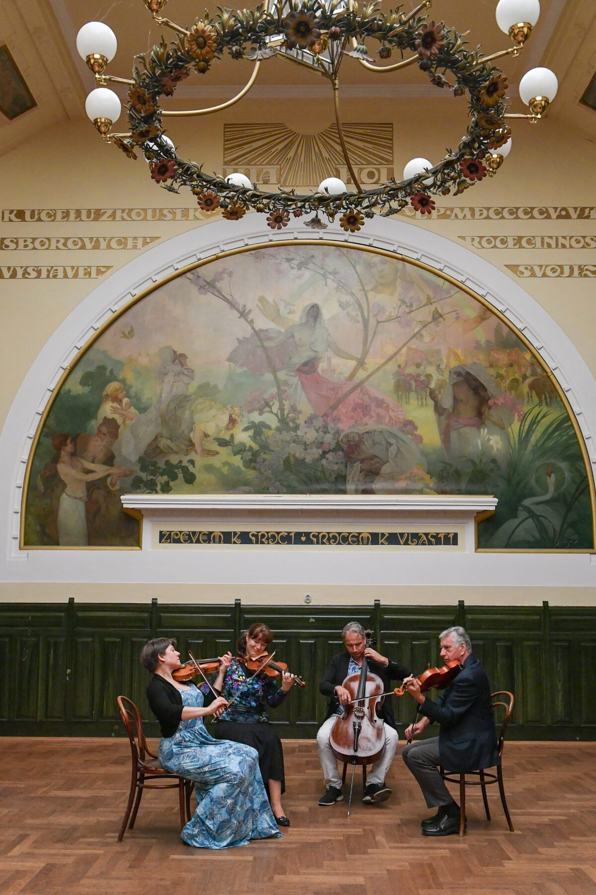 Dům s bohatě zdobenou fasádou nejde na pražském Masarykově nábřeží přehlédnout. Jen málo kolemjdoucích ale tuší, že perla secesní architektury ve svých útrobách ukrývá výjimečný koncertní sál s proskleným stropem a malbami Alfonse Muchy. Toto září dodá jedinečnou atmosféru novému festivalu komorní hudby s názvem Pražákovo kvarteto a přátelé, který rozšíří kulturní nabídku pražského babího léta. Stojí za ním mezinárodně renomované Pražákovo kvarteto, zejména jeho violoncellista Jonáš Krejčí.