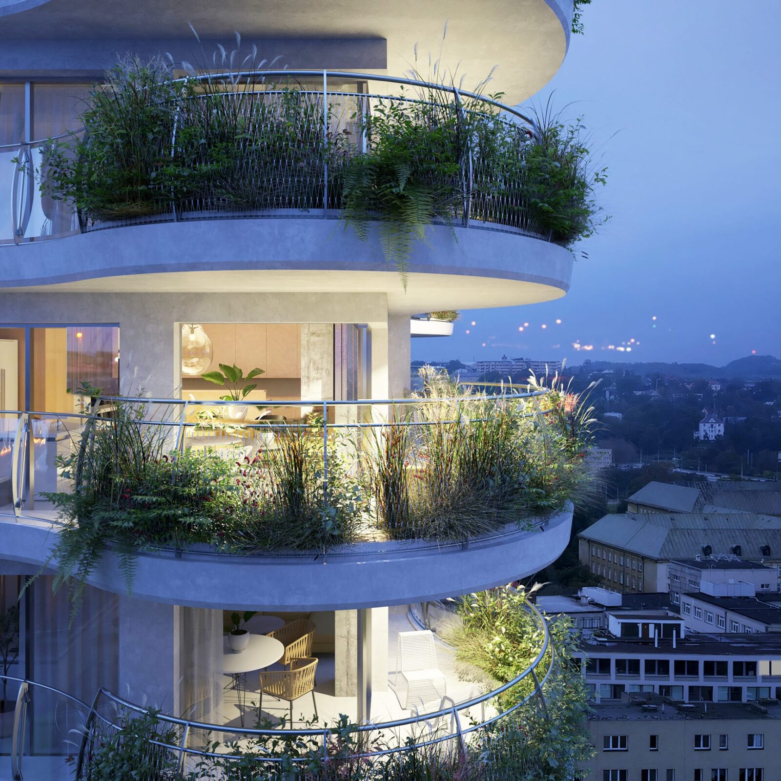 “Když žijete ve výšce, zahrada dodá prostoru potřebnou intimitu a dá vám příjemný pocit uzemnění, kontaktu s kořeny. Nemluvě o tom, že i ten maličký kousek přírody vám vnese do života pocit smyslu, vědomí, že pečujete o něco živého. Chtěli jsme, aby ten dům konečně dýchal. Aby dovnitř mohlo světlo, aby se otevřel lidem. Nejde jen o nové balkony, ale o nový vztah k prostoru... (Eva Jiřičná, architektka a spoluzakladatelka AI DESIGN)”