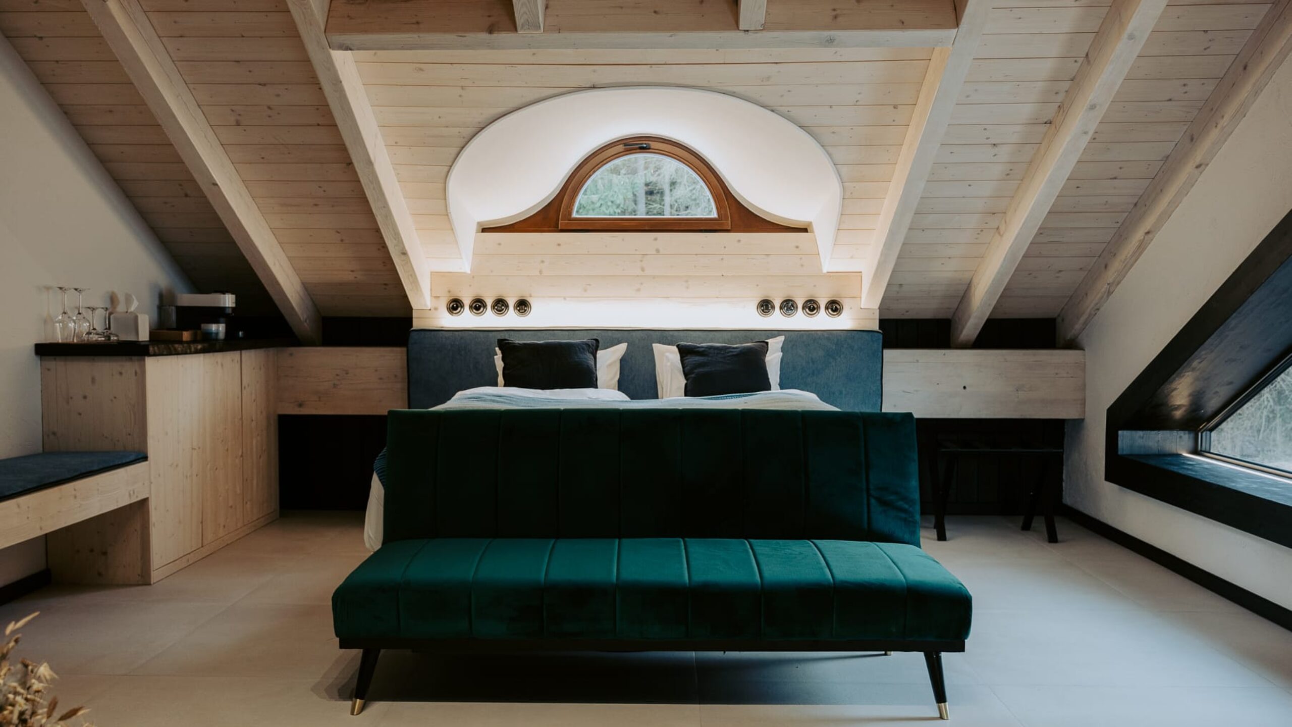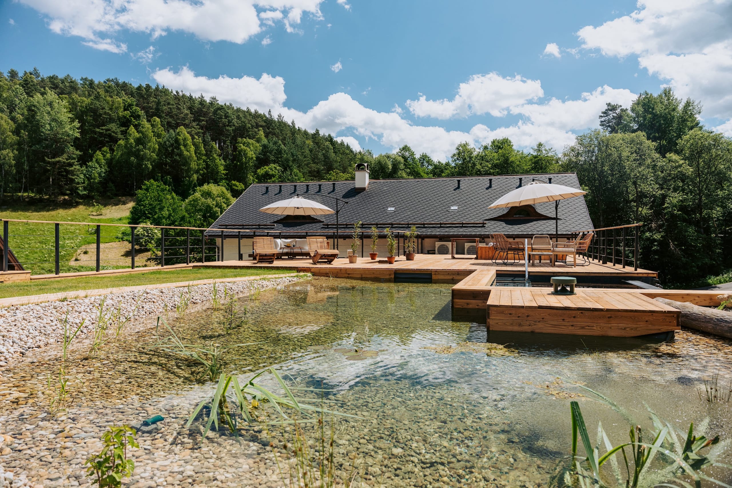 Okreska lemovaná jabloňovou alejí se vine malebnou krajinou Podještědí. Stromy se nakrucují v jasném sobotním slunci, jako by se chtěly předvádět, jak jim to sluší v barvách podzimu. Silnice se nakonec stáčí do tichého údolí a klesá do voňavé náruče lesů. V jejím objetí stojí čtyřsetleté stavení, které působí téměř pohádkově – bílá vápenná omítka a modré okenice evokují pohodu na první pohled.