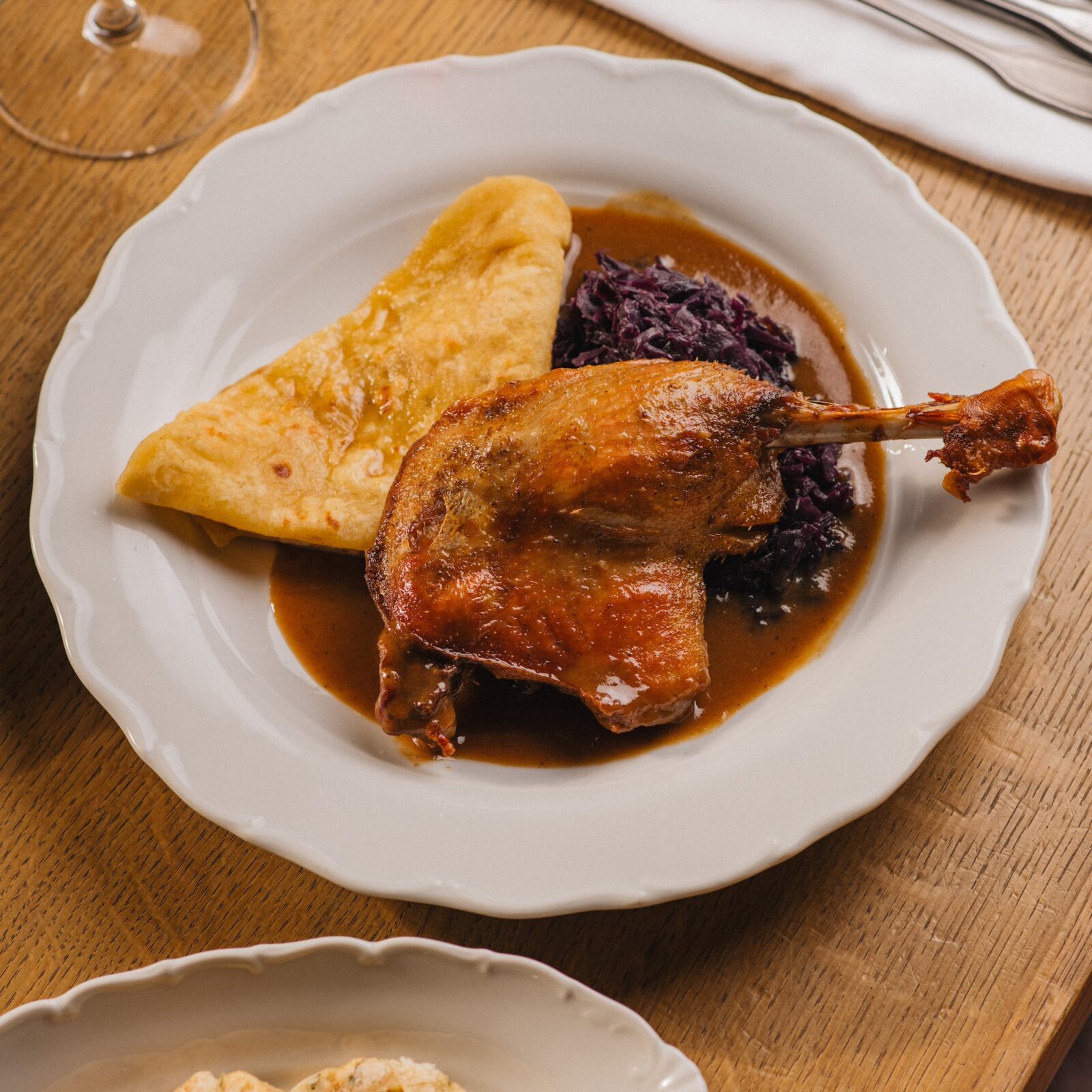 V Lokálech umí husu přesně tak, jak si ji představujete v ideální podobě: dozlatova upečenou, s křupavou kůží a masem, které se odděluje při prvním doteku vidličky. Není v tom žádné tajemství, jen čas, trpělivost a pár základních pravidel, která se v kuchyni předávají z generace na generaci. Recept výkonného šéfkuchaře Václava Kouby je jednoduchý, poctivý a funguje stejně dobře v profesionální kuchyni jako doma o víkendovém odpoledni.