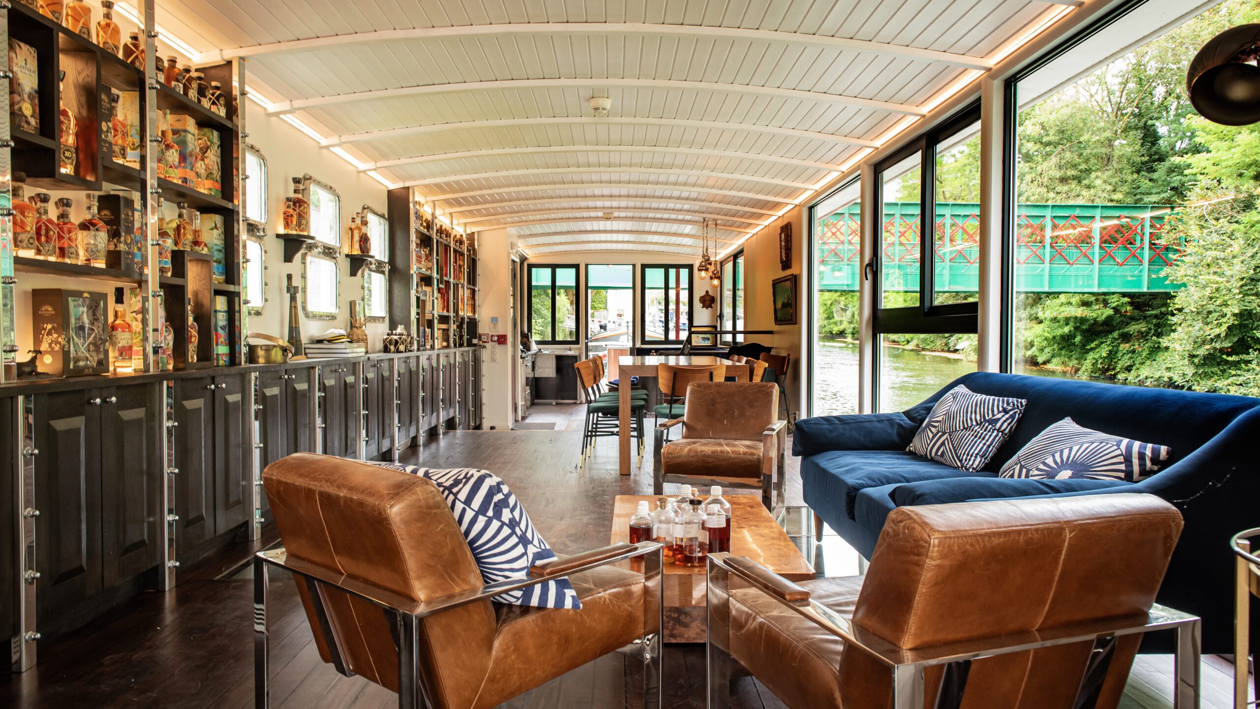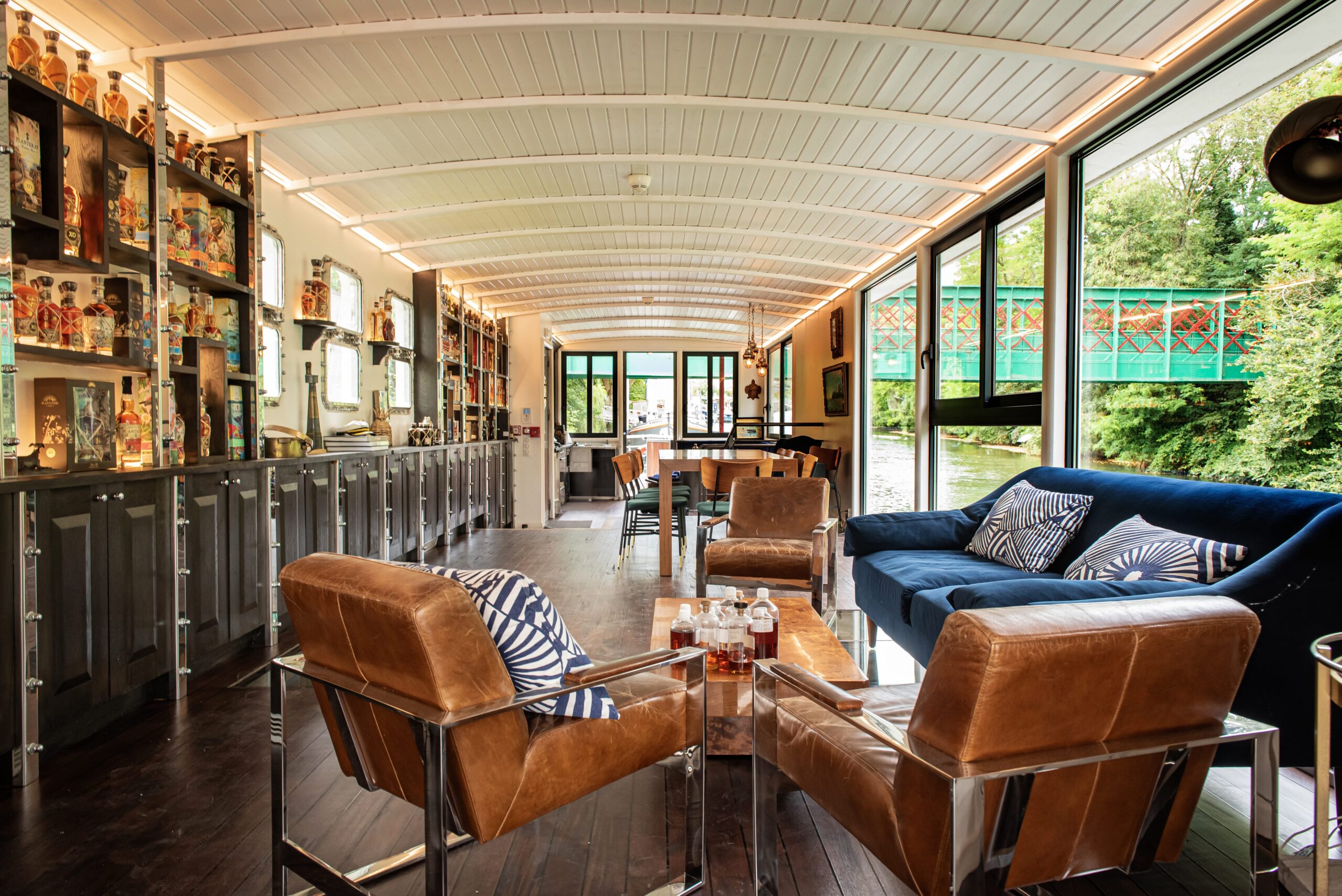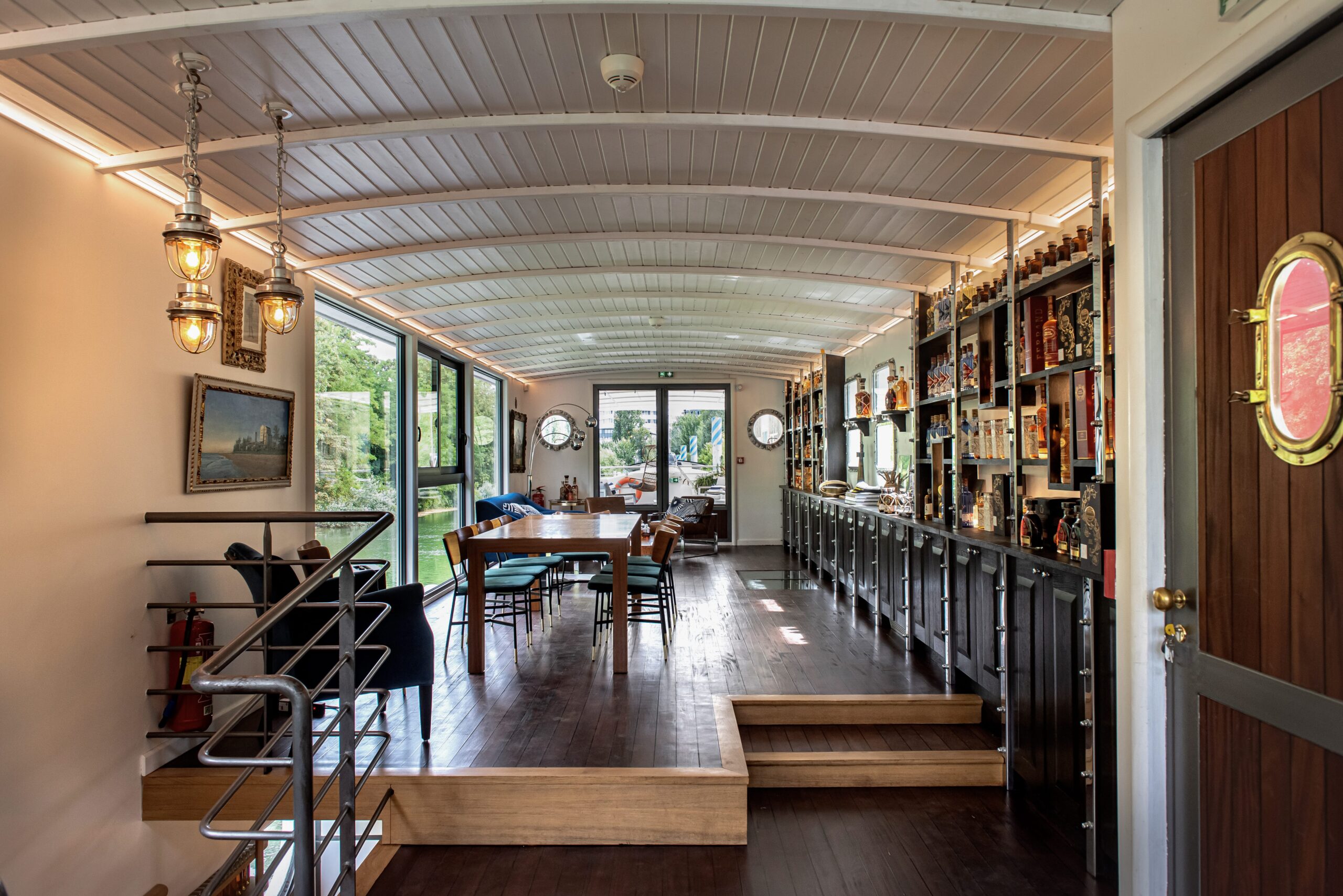 Právě pro rumy a koňaky se rozhodl vytvořit speciální zázemí, kde mohou zrát na pohupující se hladině řeky. Houpání tady napomáhá ještě speciální mechanismus, který s lodí občas zahýbe. Lihoviny totiž díky tomu v sudech zrají úplně jinak, než kdyby byly staticky umístěné v klasickém sklepě. Jde o takzvané dynamické zrání, které je známé stovky let, zejména díky britským námořníkům – ti rumy začali na lodích vozit už v 16. století místo piva, protože se na rozdíl od něj nekazily. Navíc se zjistilo, že při zrání na lodích pomáhá pohyb vodní hladiny lepšímu kontaktu rumu s dřevem sudů. Tento pohyb přidává další chuťové nuance, rum je plnější, tmavší, má vyšší obsah alkoholu a přidává se před něj slůvko „navy“.
