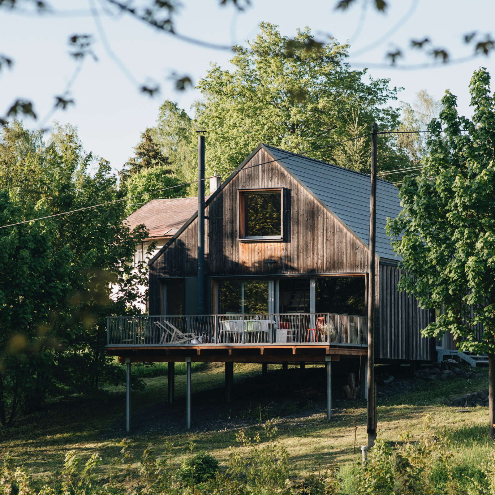 Za návrhem a realizací víkendového domu stojí architektonické studio a stavební firma Prodesi/Domesi, které má za sebou už mnoho zdařilých dřevostaveb a konkrétně tento dům v obci Pulečný vítá návštěvníky již od roku 2011. Architekti tak chtěli svým zákazníkům nabídnou možnost na vlastní kůži vyzkoušet si atmosféru bydlení v typovém domě Freestyle.