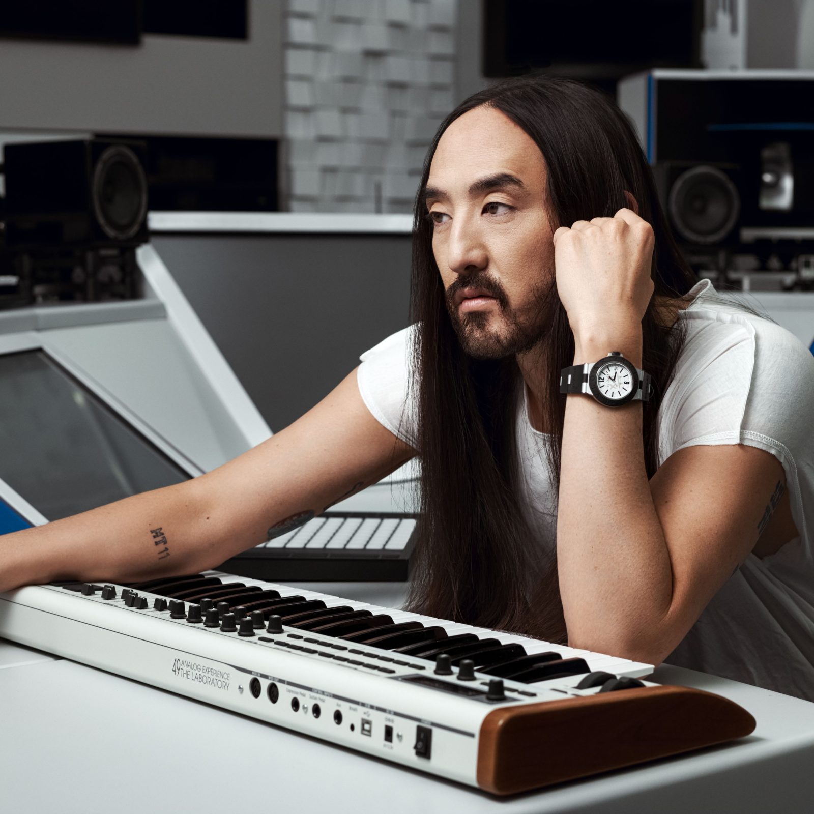Speciální edice Bvlgari Aluminium Steve Aoki je osazena číselníkem s umělcovým podpisem pokrytým ve tmě zářící vrstvou Superluminova. Díky 42hodinové rezervě chodu mohou vyznavači klubů s hodinkami s hliníkovým pouzdrem a pryžovou lunetou tančit až do úsvitu.