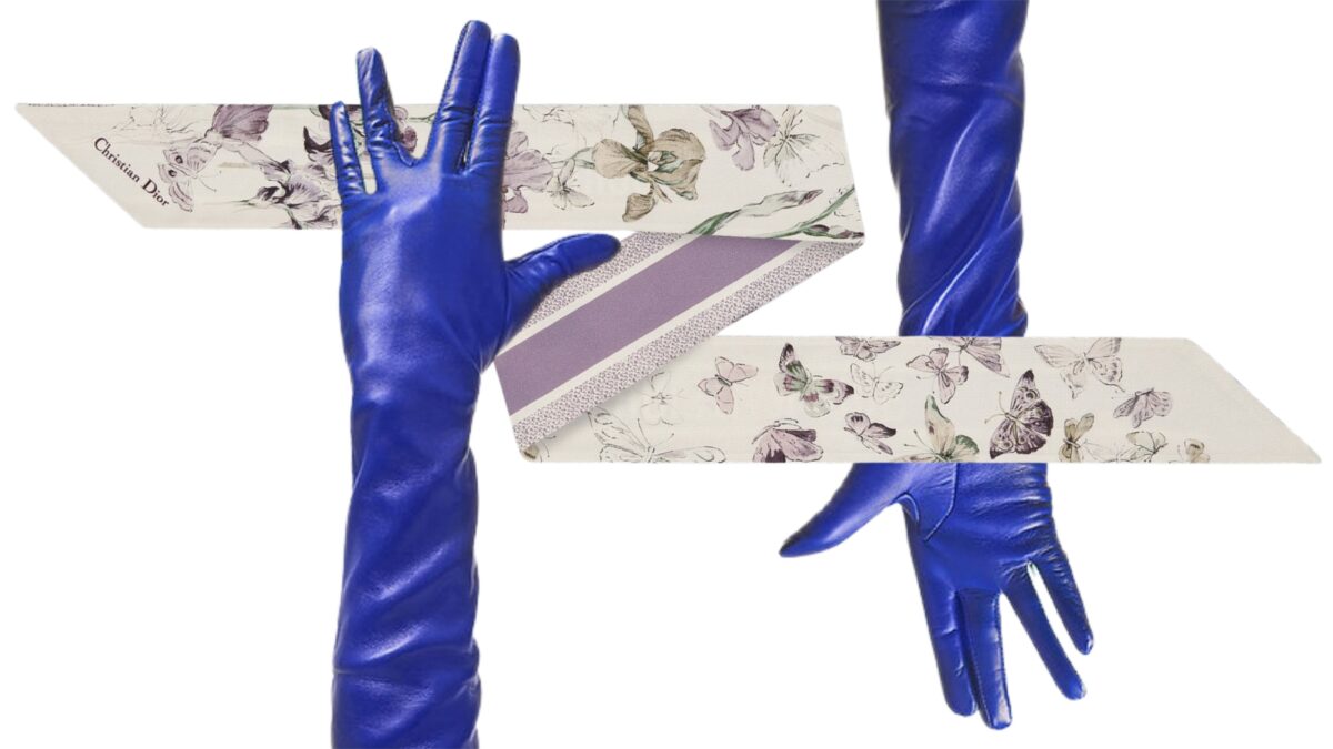 kožené rukavice Silky Gang, 3590 Kč, koupíte zde; šátek Dior, 5300 Kč, koupíte zde