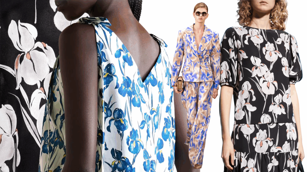 Juraj Straka mluví o kosatcích s nefalšovanou něhou. „Kosatce miluji odjakživa,” říká slovenský textilní designer. První vzpomínky ho vracejí do dětských let, k babiččině zahradě a k těm klasickým „vesnickým“ fialovým kosatcům s omamnou, sladkou vůní. Jejich modré odstíny ho nikdy neomrzí. Modrá je ve světě květin vzácná, a právě proto miluje miniaturní Iris reticulata Harmony, první modrý květ sezóny v jeho zahradě. Dnes už ve vlastní zahradě pěstuje téměř všechny jejich podoby – od trpasličích raných odrůd, přes majestátní vousaté typy a Iris hollandica, až po japonské kosatce se žilkovanými okvětními lístky rozkvétající v jezírku. Motiv kosatce se proto stal jedním z jeho nejpřirozenějších podpisů. Ve své tvorbě motiv kosatce zpracoval pro takové módní velikány jako Jasona Wu, Máriu Štvrteckou nebo Schiaparelli. Jeho práce začíná u reality, ale často končí v pocitu. „Rád kreslím detailní realistické botanické studie, někdy klidně celé hodiny v transu.“ Jindy míří k čisté abstrakci. Květinové motivy tvoří devadesát procent jeho práce, a tak je zpracovává všemi způsoby od přesného záznamu až po rozpité gesto.
