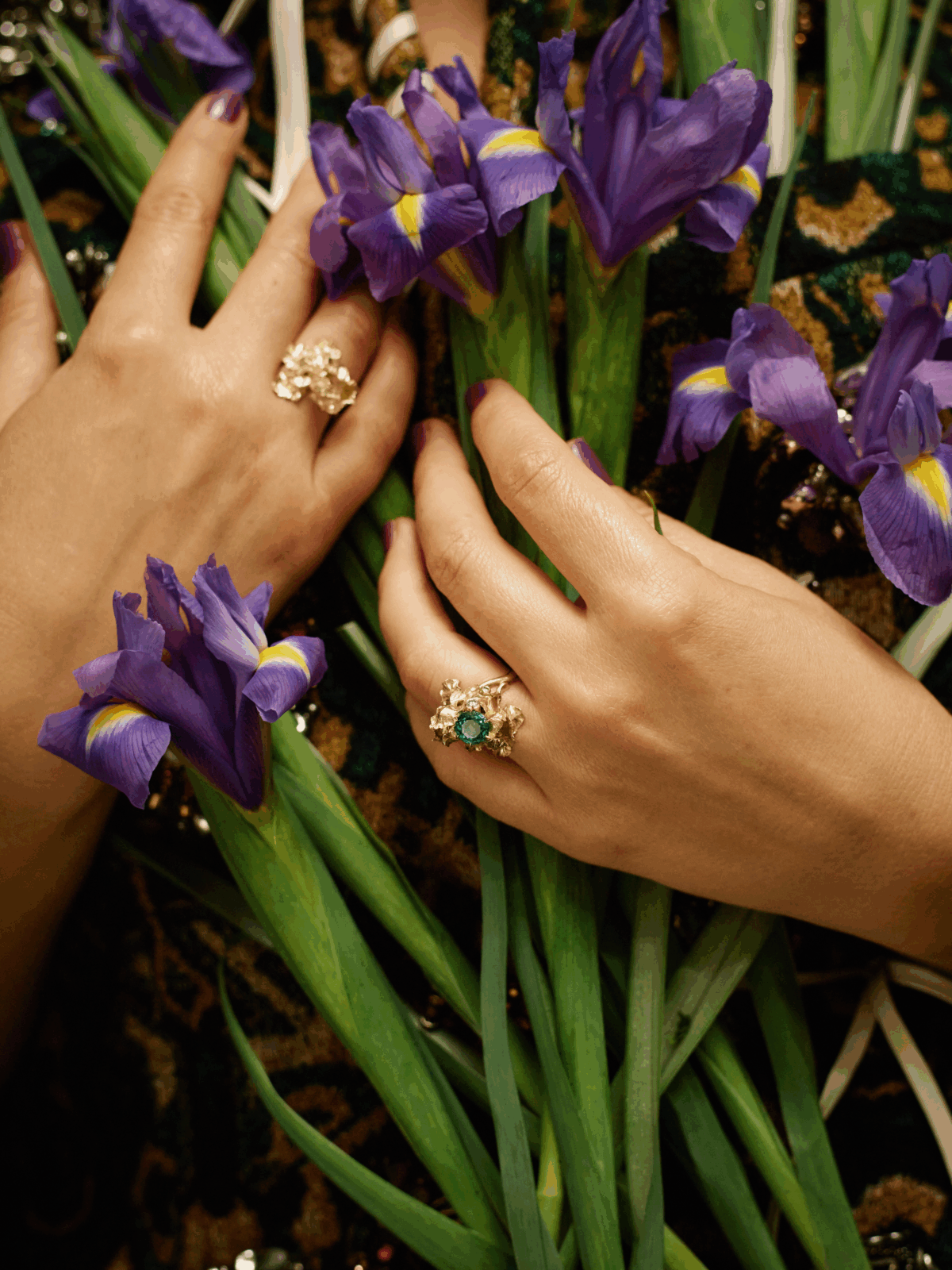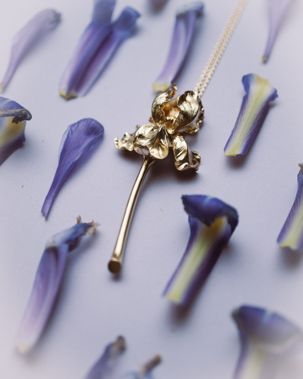 „Nejvíc mě oslovila myšlenka, že bychom si měli do života pouštět jen lidi a situace, které jsou v souladu s naší vnitřní hudbou. Že bychom neměli popírat, kým jsme, a chodit přes své hranice, ale naopak se obklopovat lidmi a věcmi, které náš vnitřní svět respektují a zároveň ho prohlubují. Celý život chci rozvíjet svůj vnitřní svět, naslouchat mu a vpouštět do něj jen to, co s ním rezonuje a co v něm bude kvést. Věřím, že pouze skrze autentickou otevřenost a ochotu snít se můžeme vrátit k sobě samým,“ říká Janja Prokić. Symbolika kosatce se odráží i v její nové kolekci: šperky nejsou jen ozdobou, ale artefakty připomínající cestu do nitra. Kosatce lze vnímat i jako květy s jemnou erotickou smyslností; neoslňují silou, ale klidem a jistotou. „Líbilo se mi, jak Hesse popisuje zlaté chloupky na spodních listech kosatce jako cestičku pro brouky. Já si je přenesla jako symbol cesty k našemu srdci, dovnitř. Věřím, že pravdu vidíme spíš srdcem než očima,“ dodává designérka.