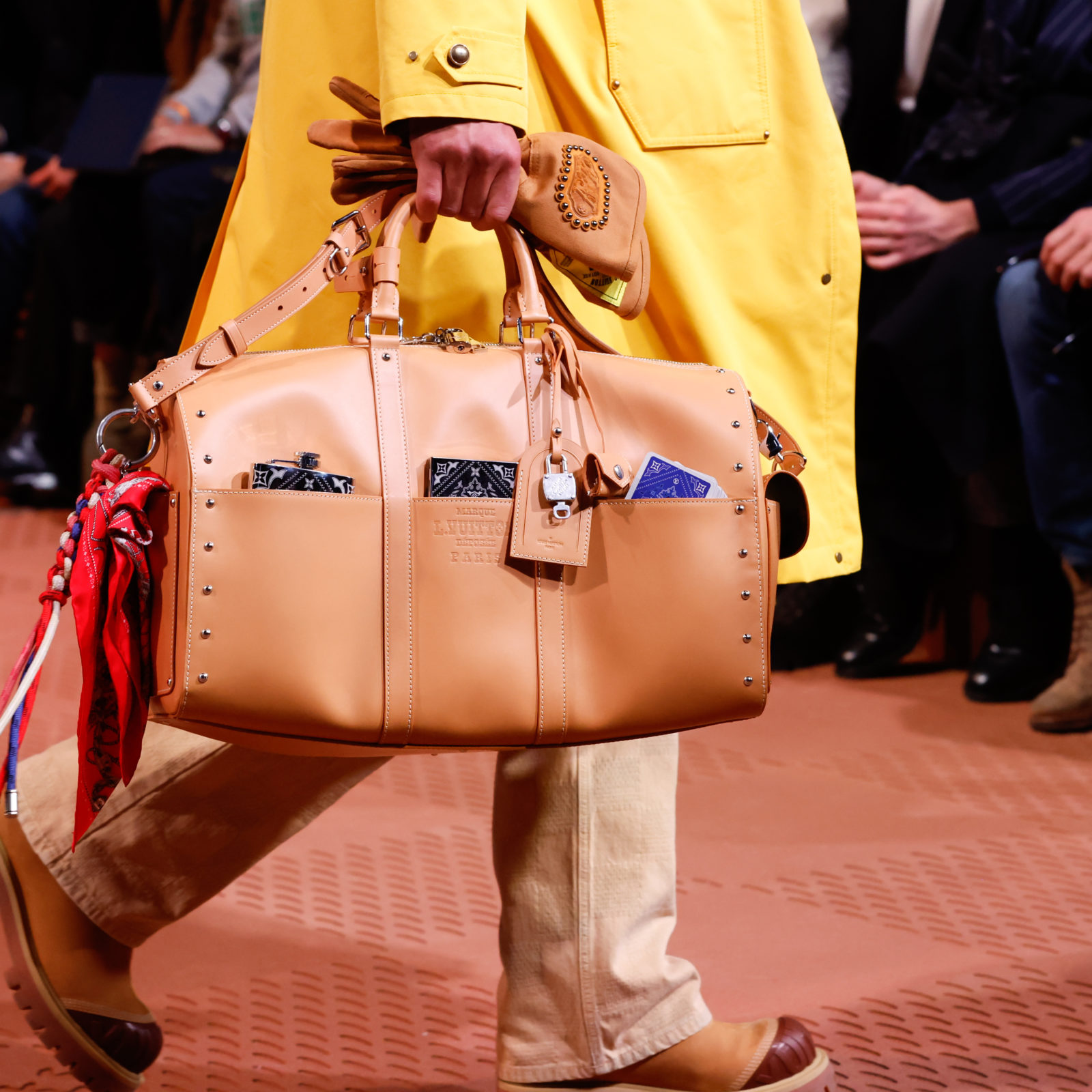 Dandy Louis Vuitton se vyvíjí prostřednictvím americké westernové tradice oblékání. Obleky a košile perspektivou country přístupu zdobí řetízková výšivka kaktusů, dobytčích lebek a vázanek bolo ve westernovém stylu. Pracovní silueta se transformuje do krejčovské u vaquero bund s ruční výšivkou květů z metalických korálků, pracovních bund s vícebarevným korálkovým zdobením v podobě slunečních paprsků a obleků s pruhy nebo károvým vzorem Damier z kovových cvoků či tyrkysovým zdobením.