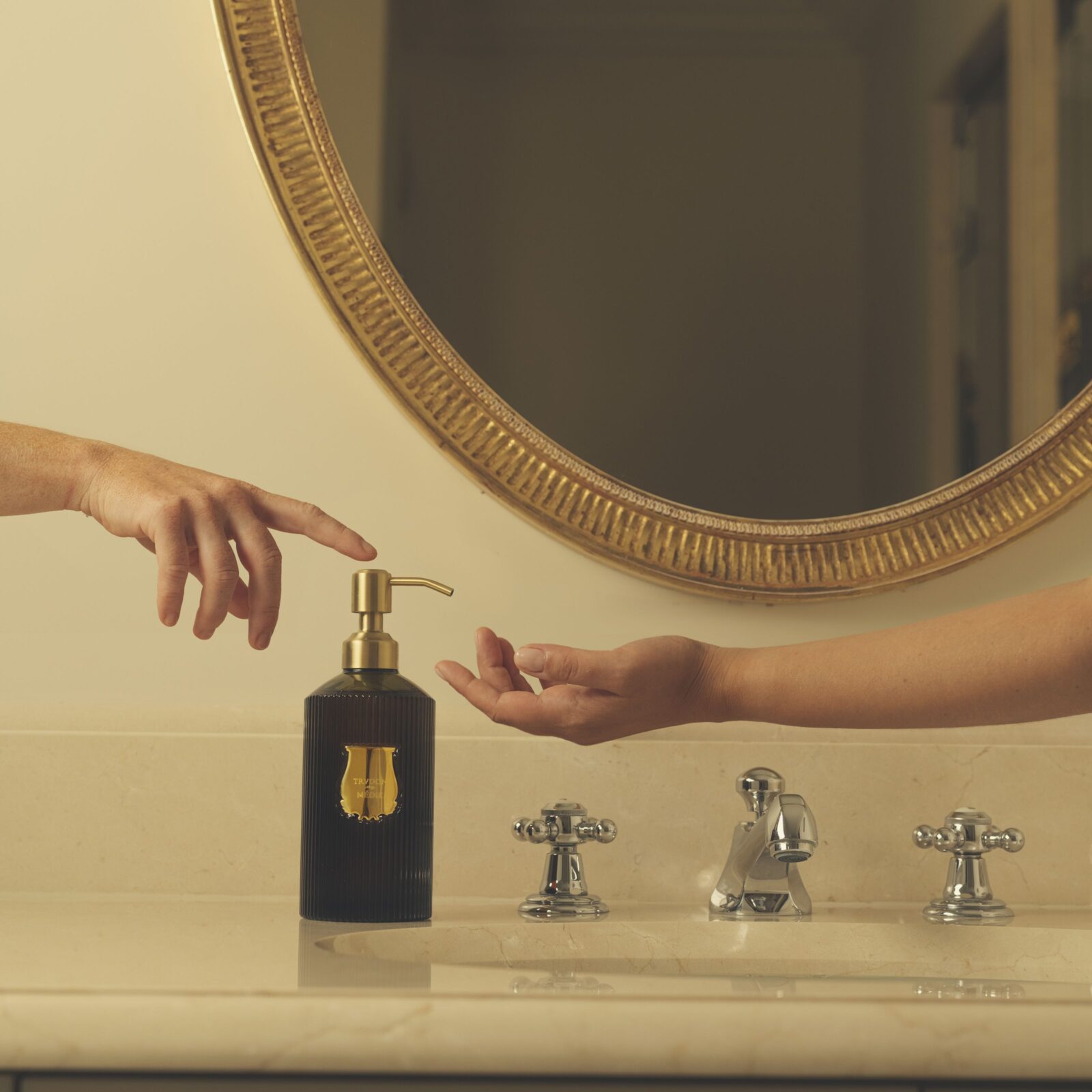 Tekuté mýdlo na ruce se svěží dřevitou vůní Vixi, kterou tvoří tóny santalového dřeva, šalvěje a jasmínu. Mýdlo se ukrývá v elegantním flakonu ze zeleného skla, inspirovaném toaletními potřebami evropských královských rodin z 18. století, který zároveň plní dekorativní funkci.