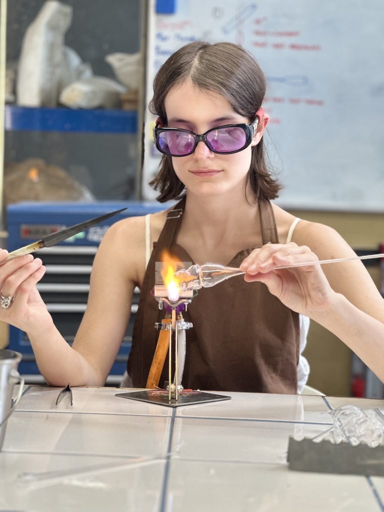 Nedávno jsem dokončila studium skla v ateliéru Marcela Mochala na FUDu. Sklo mě fascinuje a už v průběhu studia jsem věděla, že chci rozjet nějaký vlastní projekt. S kamarádkou Dariou Kolodinou jsme začaly zkoušet novou techniku, zpracování skla nad kahanem. Ihned nás to chytlo a řekly jsme si, že toto tradiční řemeslo chceme předávat dál. Proto za pár měsíců otevíráme první workshopový space pro veřejnost na Praze 2 s názvem Happimess a doufáme, že se nám podaří více propojit veřejnost se sklářskou tradicí.