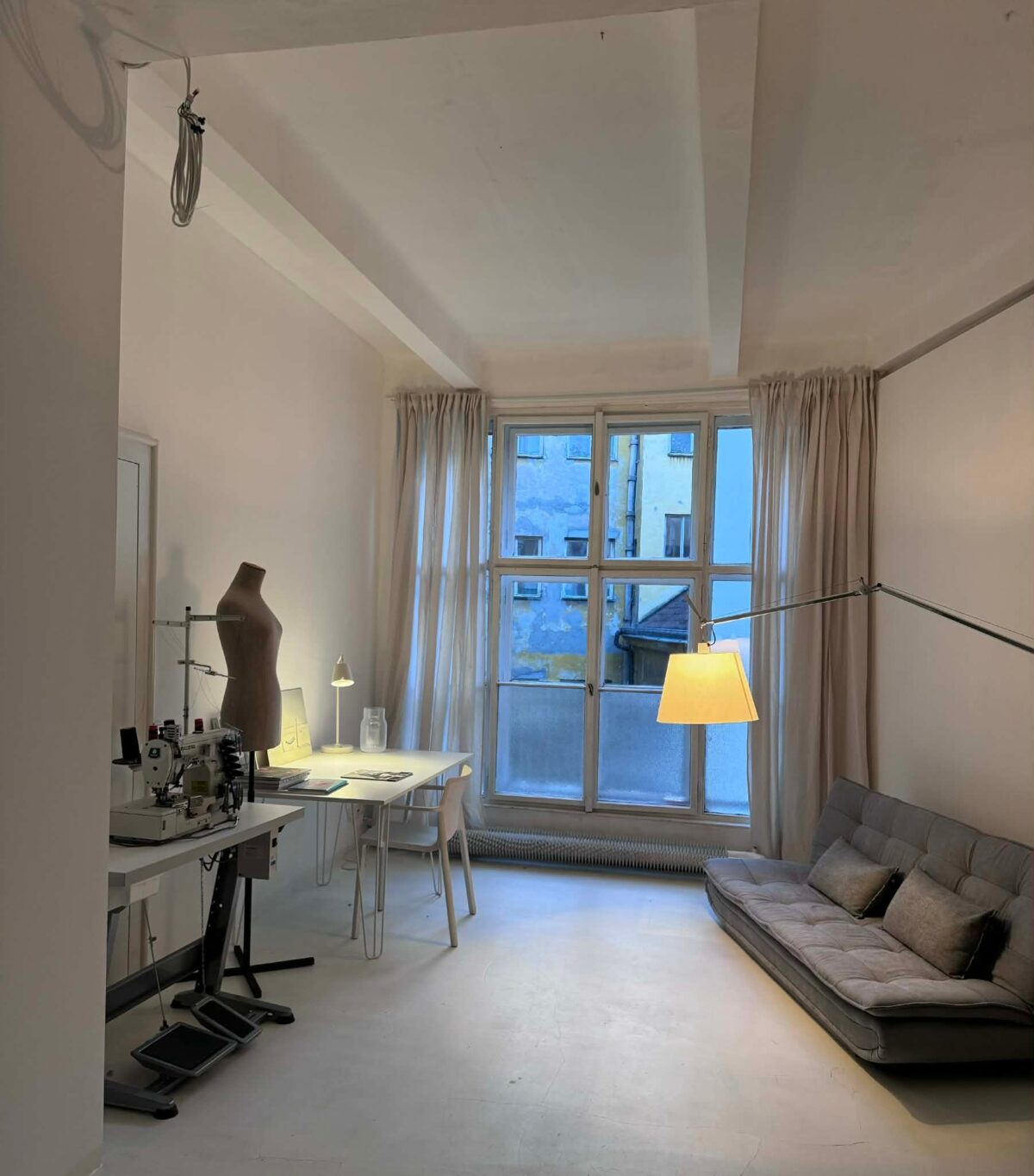 Na jednu stranu je to má zahrada, která se teď ukládá k zimnímu spánku, já se na ní oknem dívám a říkám si, že bych se do toho klidu měla uložit taky, ale vím, že bych to nevydržela. Ve svém ateliéru jsem si vytvořila malý privátní koutek, kde mám malý gauč, stolek, lampičku a knihy a časopisy, a tady za okny slyším ruch velkoměsta. Jsou to kontrasty a mé důležité pozice. Jedna je rušná, temperamentní a pracovní, a druhá je odpočinková a mírumilovná. Právě kompilace těchto dvou prostředí mi přináší opravdový klid.