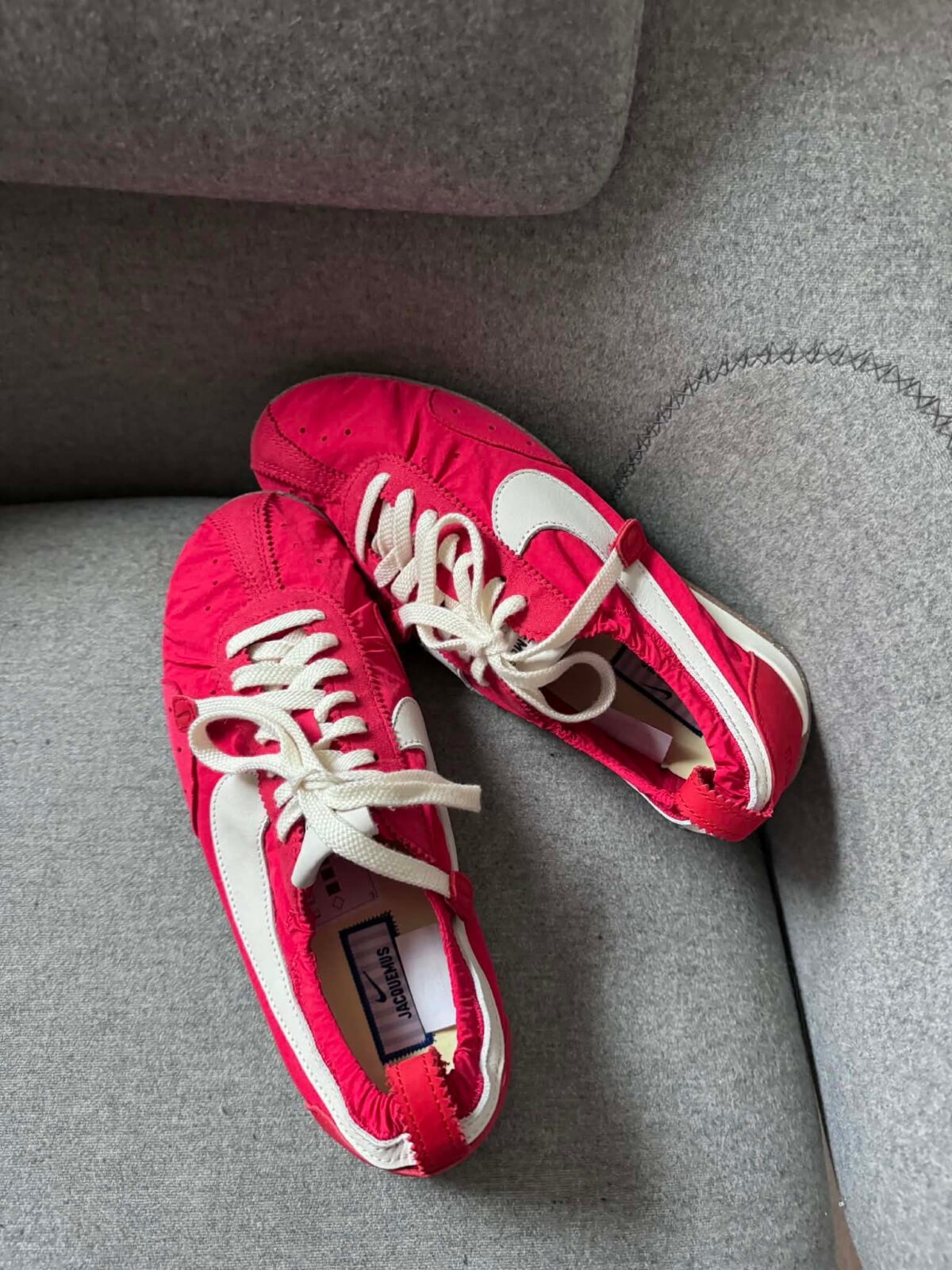 Jsou hned tři, a každý z nich v sobě má nějaký „touch of red“. Jako odměnu po Designbloku jsem si pořídila tenisky Humara od Nike x Jacquemus. Jsou výrazně červené, a skvěle se hodí k mým oblíbeným celočerným outfitům. Radost mi dělají i brýle od Ricka Owense, ty jsem si pořídila při podzimní návštěvě Paříže. Jsou obrovské a mají růžovo-červená skla. Nosím je nejraději právě v takových šedých pošmourných dnech, jako bývají právě teď, protože všechno kolem zahalí do pozitivního červánkového závoje. A třetí červenou radostí je moje vlastnoručně vypěstovaná řepa. Zrovna před pár dny jsem ji sklidila ze záhonu, a užívala si, jak intenzivně zemitě voní, jak sytě barví a jak báječně chutná v boršči.