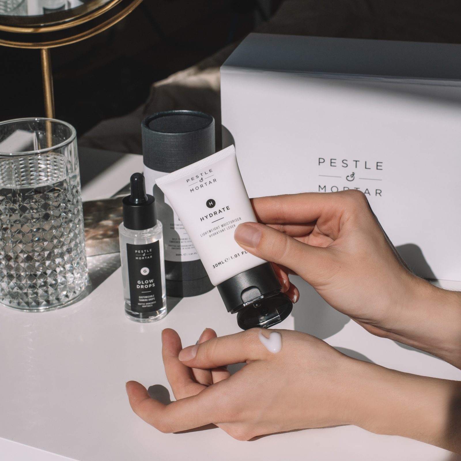 Hlavním cílem při použití tónovacích prostředků je dosáhnout přirozeného vzhledu bez vysušení pokožky a bez vytvoření nadměrně bronzového odstínu. Otestovala jsem přizpůsobitelný tónovací koncentrát Glow Drops v kombinaci s ultralehkým hydratačním krémem Hydrate.