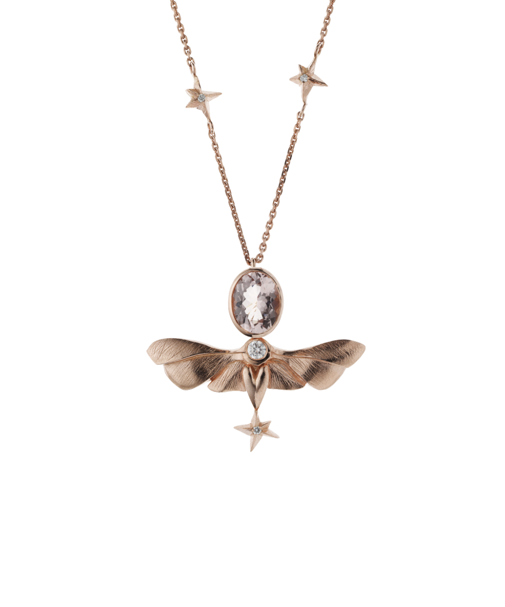 Hlavní roli v nejnovější kolekci Amor Fati má můra, noční motýl, tvor opředený mýty a symbolikou. Spolu s motivem temného lesa, hvězd a srdce vytváří obraz cesty, která vede z temnoty k porozumění a přijetí. Amor Fati, latinský výraz znamenající „miluj osud“, nás vybízí, abychom přijali svůj život se všemi jeho proměnami. Milovali nejen světlo, ale i stíny, které nás formují. Tento pojem poprvé představil filosof Friedrich Nietzsche a připomíná, že vše, co se nám děje, má svůj důvod a je součástí vyššího plánu. Přijetí osudu se tak stává aktem víry, odvahy i krásy.