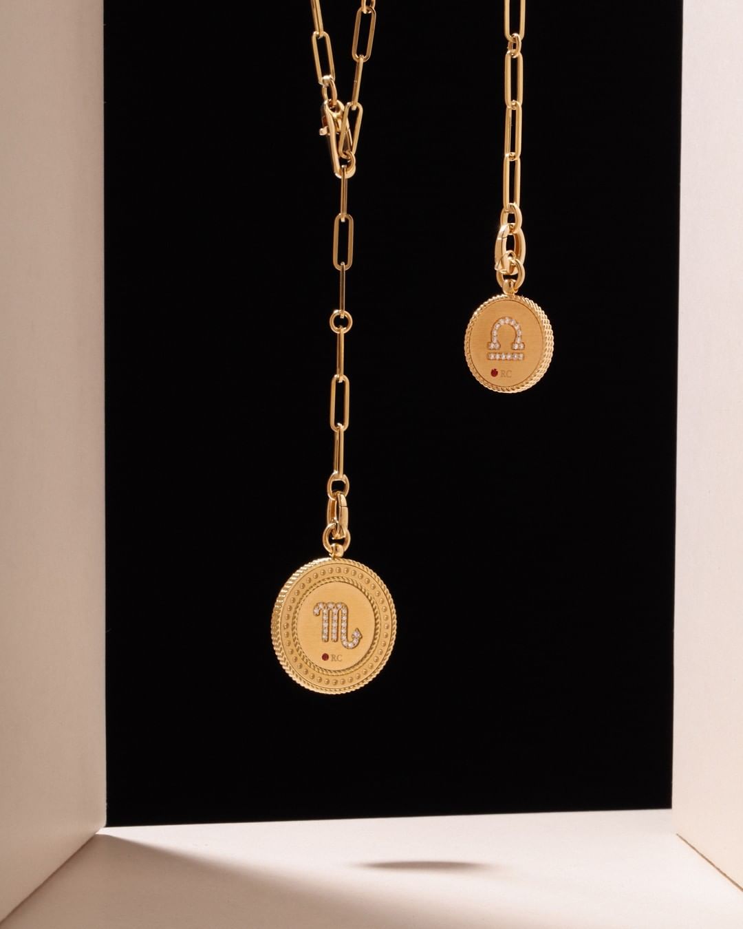 Italský šperkař Roberto Coin vytvořil medailony, jež v sobě spojují sílu symbolů s precizním řemeslným zpracováním a charakteristickým rukopisem značky. Každý přívěsek z kolekce Zodiac Medallions je zhotoven z 18karátového zlata a zdoben diamanty, které zvýrazňují siluetu znamení. Přední strana září čistotou a jasem, zatímco zadní strana skrývá jemný dekor ve stylu Venetian Princess, detail, který proměňuje šperk v intimní talisman, známý především nositeli. Medailony jsou zavěšené na elegantním „paperclip“ řetízku, jehož délka umožňuje přirozené nošení blízko srdce. Každý symbol je přitom více než pouhou ozdobou. Beran připomíná odvahu a energii, váhy harmonii a krásu, ryby intuici a citlivost, lev sílu a hrdost. Kolekce tak nabízí cestu, jak prostřednictvím šperku vyjádřit osobní charakter a nést u sebe znamení svého osudu.
